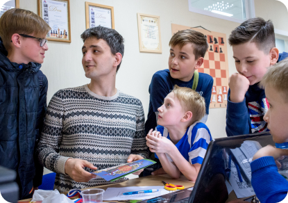 Мы используем занятия шахматами, чтобы научить ребенка стратегическому мышлению, умению выбирать лучшие варианты и не бояться принимать решение, нести за него ответственность, видеть дальше и шире других.